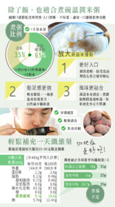 歐盟食安局(EFSA)認證,最高食療等級蒟蒻粉製成的蒟蒻健康米,與白米相同外型與口感,一同烹煮可減少醣分、增加膳食纖維攝取,且有飽足感、不怕過量飲食。針對不愛吃青菜的孩童、外食上班族到老年人補充必要營養,蒟蒻米都是最適合的選擇。